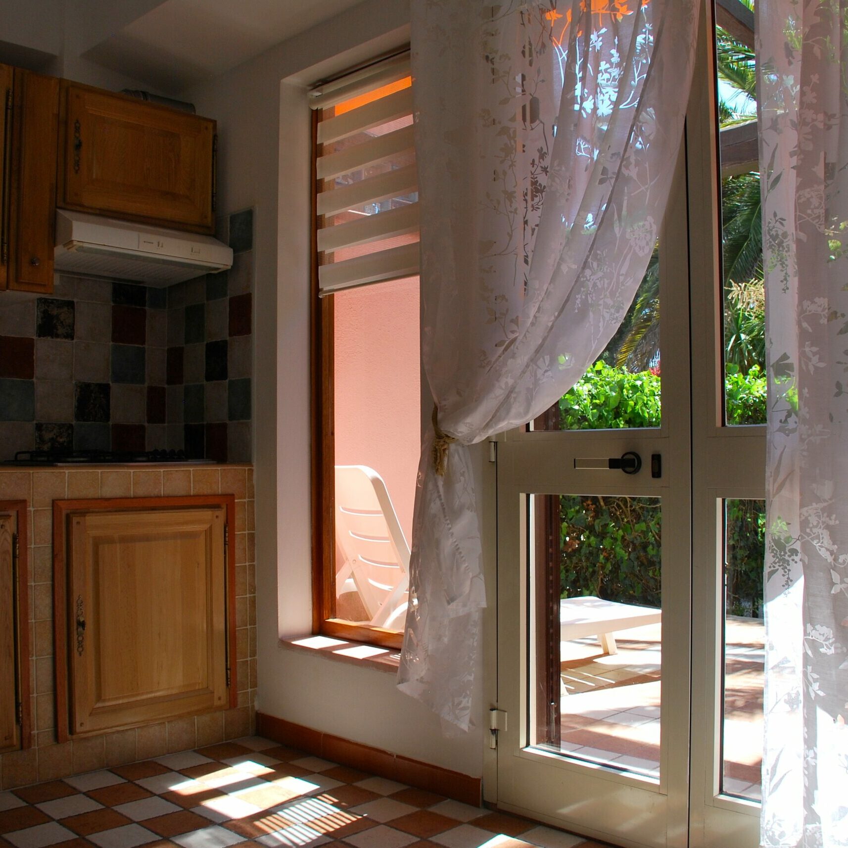 Sie haben eine moeblierte Terrasse zur exklusiven Nutzung. Der kleine Wohnbereich ist ausgestattet mit Kochnische, Kühlschrank mit Gefrierfach, Mikrowelle und TV, Telefon, Wandsafe, Deckenventilatore und Klimaanlage.