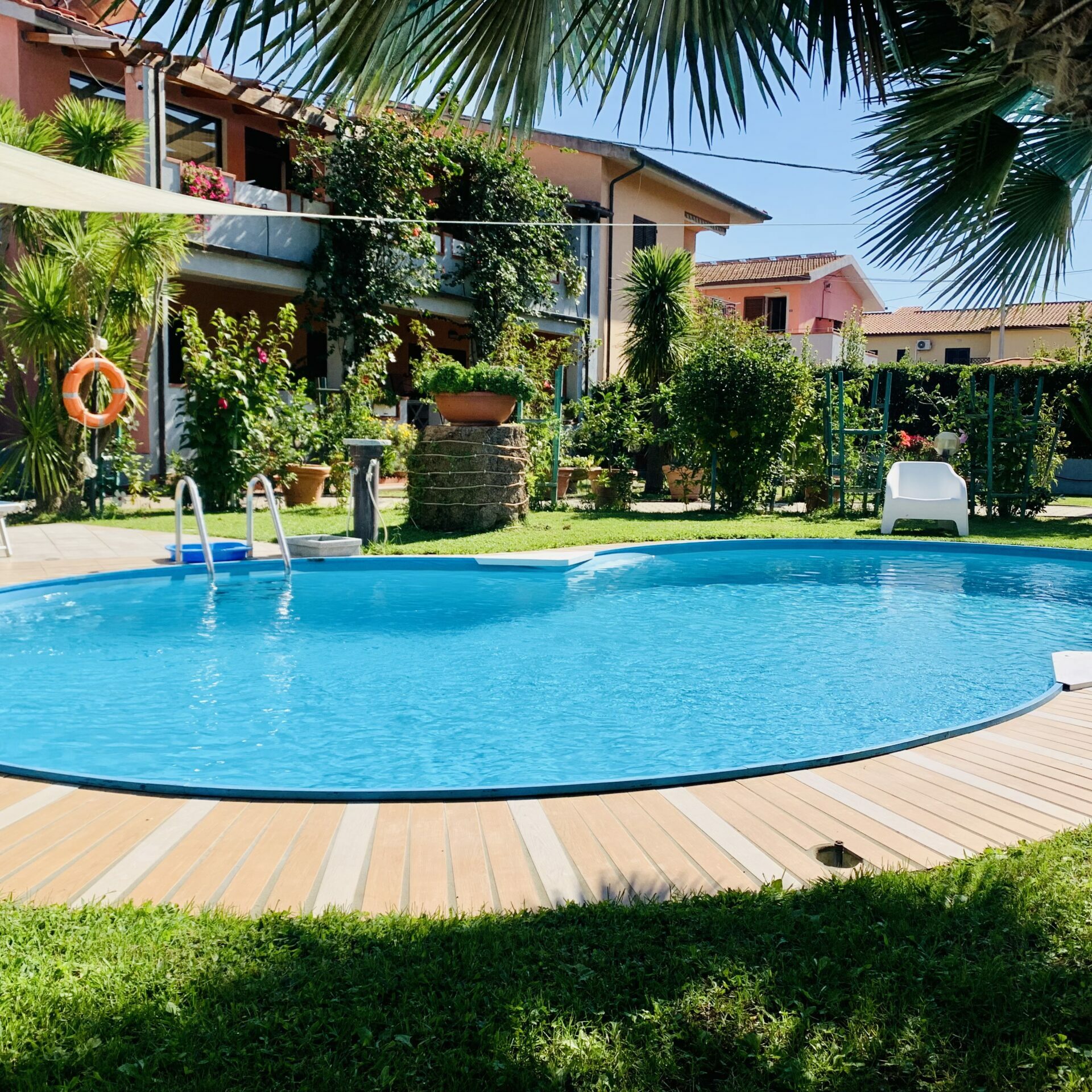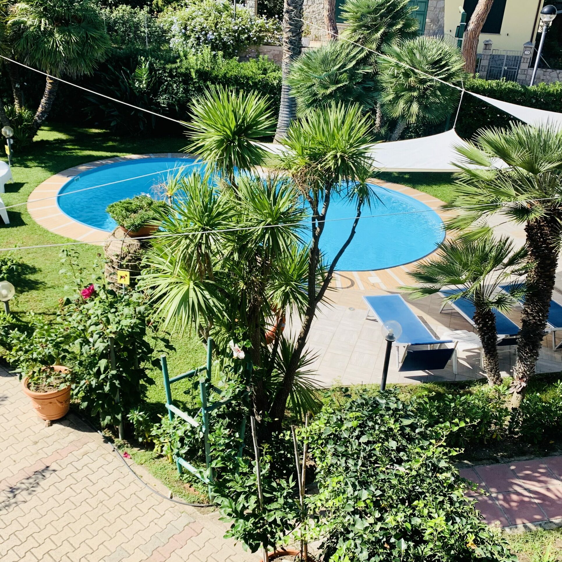 Another entrance leads us to the garden with our small open air pool. Here we have the remaining garden hotel rooms and the larger apartments of Residence dei Fiori.