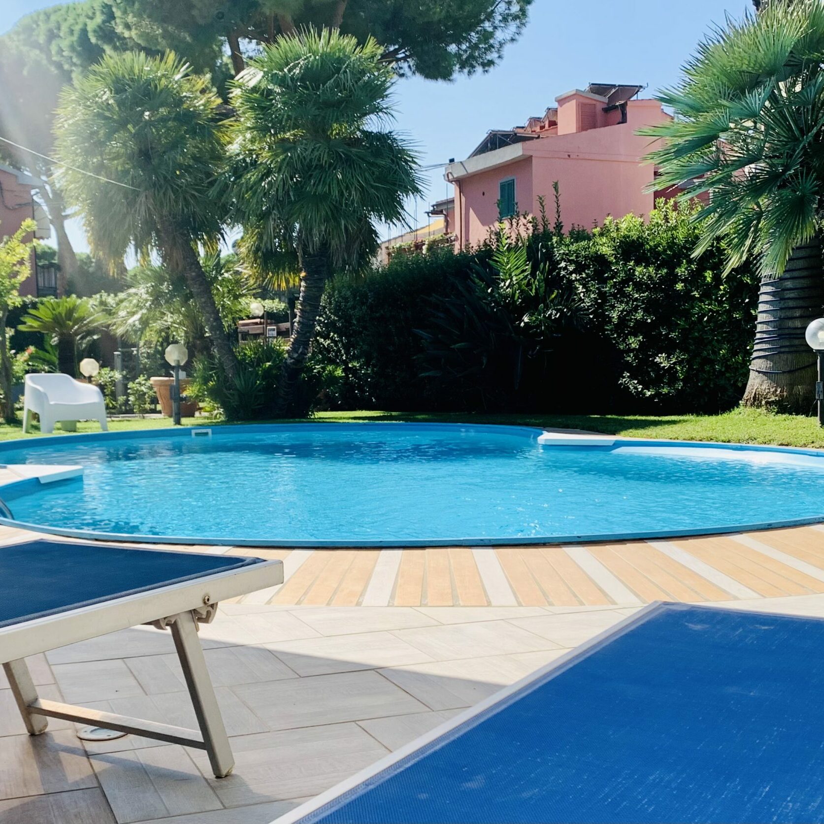 Our pool is surrounded by plants and trees and you will find sun loungers to relax on during the day.