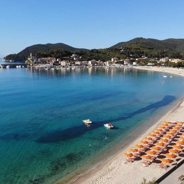 The golden sandy beach, one of the longest on the island of Elba and its crystal clear shallow shore makes it very popular with our guests.